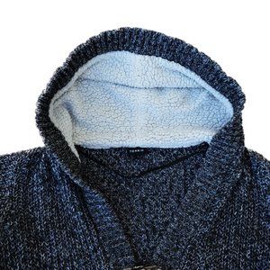 Torrid Cardigan Duster. Dark Grey Marled Longline Faux Sherpa Lined Hood. Toggle Front Closure. Front Patch Pockets. Machine Wash Cotton Acrylic Nylon. Tagged Size 2. Plus Size. 18 / 20.