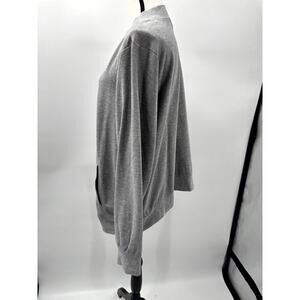 This Torrid sweater is designed for women in size 3. It features a heather gray color with a tight-knit, stretchy material blend of spandex and rayon. The sweater has a V-neckline, long sleeves, a full zipper closure, and pockets. It is suitable for travel and casual occasions, perfect for the fall and winter seasons. The garment should be hand washed and has a modern yet classic style.