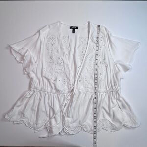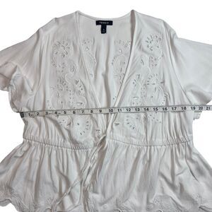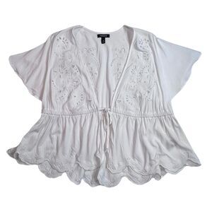 Torrid Cardigan Women 0X White Eyelet Challis Tie Front Third Piece Boho Duster