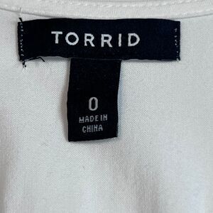 Add a touch of bohemian style to your wardrobe with this beautiful Torrid cardigan. The white floral pattern and tight-knit rayon fabric make it perfect for any season, whether you're traveling, running errands, or going to work. The V-neckline and flutter sleeves add a feminine touch, while the relaxed fit and lightweight design make it comfortable to wear all day. This cardigan is machine washable and easy to care for, making it a practical addition to any closet. The eyelet Challis design and third-piece Boho Duster make this cardigan a unique and versatile piece. It's available in size 0X and is perfect for plus-sized women. The cardigan is ideal for anyone who loves the hippie, bohemian, cottagecore, outdoor, city, classic, or preppy themes. Made in China, this Torrid cardigan is a must-have for any stylish woman who wants to add a touch of elegance to her wardrobe. Measures a 40-inch chest and is 23 inches long.