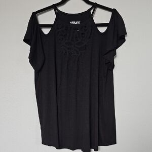 Torrid Casual Super Soft Slub High Neck Black Crochet Cold Shoulder Top XL