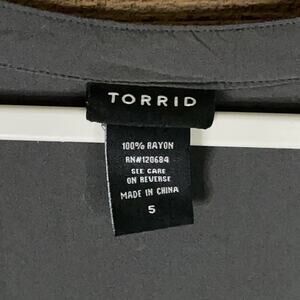 Torrid Challis button tank top.  Size 5.  Gray.  Silky soft and airy challis fabrication.  Double breast pockets.  Subtle hi-lo hem.  Excellent condition, but does have a few light marks on the neck.  See pics.  Measurements are in the pictures.