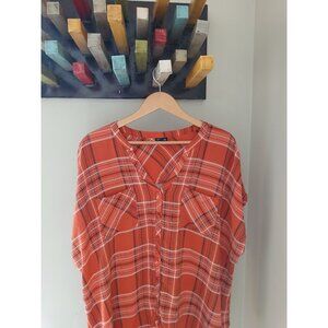 Torrid Challis Button Up Dolman Sleeve Top Plus Size 4 4X 26 Orange Plaid S/S
