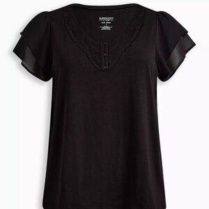 Torrid Challis Embroidered Cut Out Long Sleeve Blouse