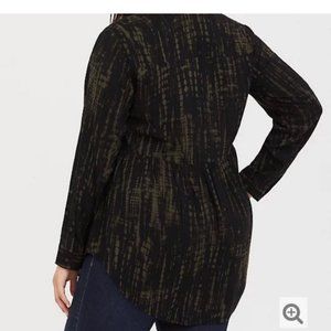 Torrid black with olive green tie dye finish. Long sleeve blouse with button front and cinched waist. Barely worn.