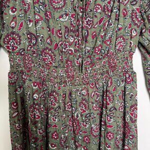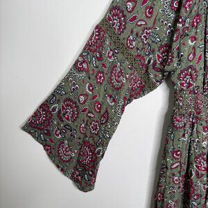 Torrid Challis Skater Dress Womens 0X Green Paisley Floral Long Bell Sleeve Off
