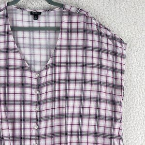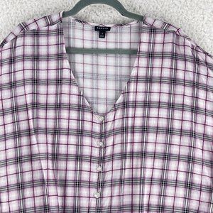 Torrid Challis Tie-Front Dolman Midi Top Womens Plaid Ivory Short Sleeve Size 1X