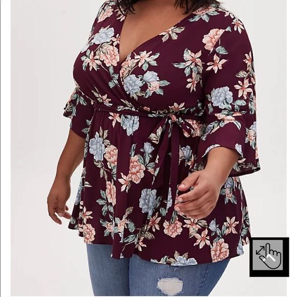 Torrid Challis wrap babydoll shirt/top/blouse sz 3 plus size 2-3xl black floral