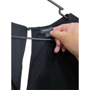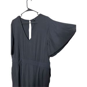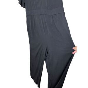 Torrid Challis Flutter Sleeve Jumpsuit Womens 3X Black. Good condition. Key hole back. Flutter sleeve. It looks like there was a repair on one of the seams shown in pic barely noticeable.