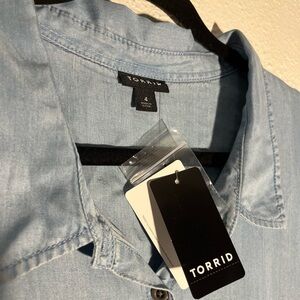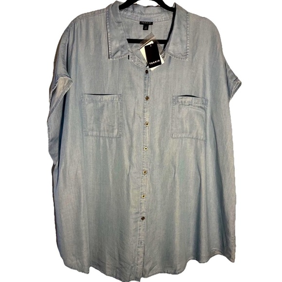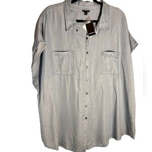 Torrid Chambray Top Cap Sleeve Button Up Denim Shirt Blouse Plus Size 4X NWT