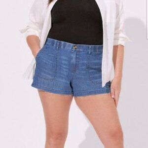 Torrid Chambray Utility Blue Pocket Relaxed Denim Plus Lightweight Shorts 24