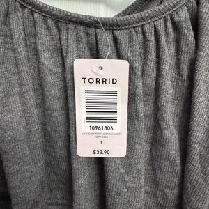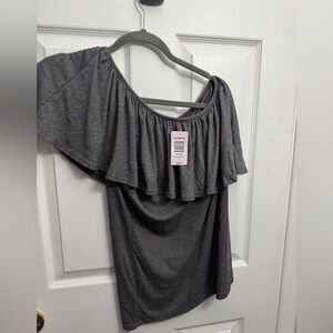 Chic charcoal one-shoulder top with elegant ruffle. Ideal for casual wear.