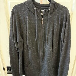 Comfortable and stylish zip-up sweater. Ideal for casual wear. Features a hood and front pockets.