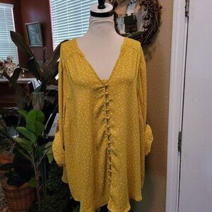 Torrid Chartreuse Green Top Blouse Polka Dot Dots Size Torrid 3 3x 3XL Button....