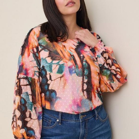 Torrid Chiffon Clip Dot Butterfly Blouson Sz: 1X (14-16)