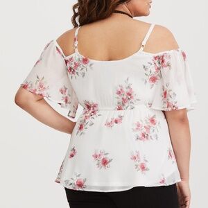 Torrid Chiffon Cold Shoulder Flutter Sleeve Surplice Floral Blouse Plus Size 2
