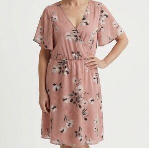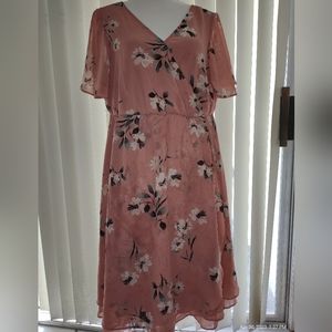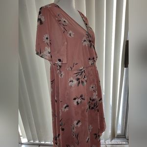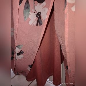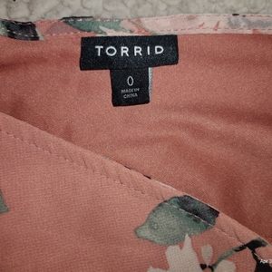 Pretty in peach and ready for Spring! Torrid dress size zero plus size. Size 0X: 40" chest, 36" long, 9" sleeve length. Triple layer chiffon helps you keep cool while staying covered.