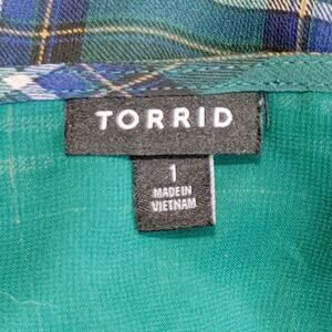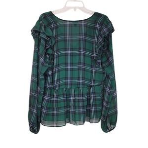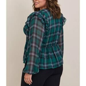 Torrid Chiffon Ruffled Surplice Crop Top Long Sleeve Plaid Green Womens Size 1