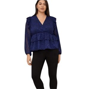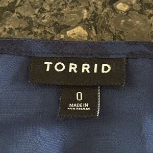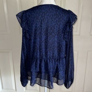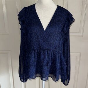 Torrid chiffon surplice blue and black animal print long sleeve blouse. Ruffled and peplum detail. Size 0 = US 12. 22” armpit to armpit laid flat. 22 1/2” shoulder seam to front hem. Excellent pre owned condition