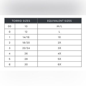 •Size 3 in Torrid is Equivalent to 22-24 see size chart above