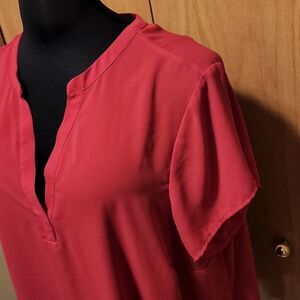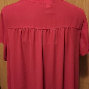 Pink flowing chiffon tunic with short sleeves and a V neck. Excellent condition!