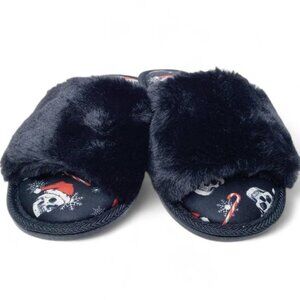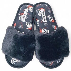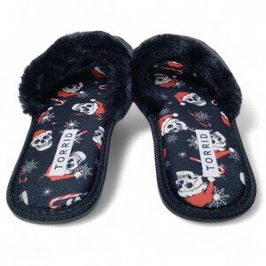 Torrid Christmas Plush Faux Fur Bedroom Slippers Santa Hat Skull Lounge Bathroom