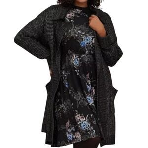 Torrid Chunky Yarn Drop Shoulder Notch Tunic Woven Crochet Cardigan Duster Woven Sweater Black Slouchy Oversized Soft Cozy Comfortable Comfy