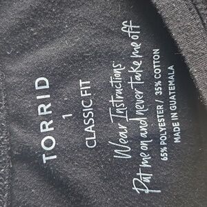 Torrid Classic Fit black short sleeved tee. Size 1X. Good pre-owned condition. There is some wash wear but no holes or stains. Great with leggings, shorts, jeans, or skirts and easy to dress up or down. Some stretch. This top no longer fits otherwise I'd keep it because it's the perfect classic black t-shirt.