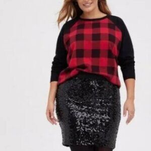 Torrid Classic Fit Cozy Fleece Crewneck Raglan Sweatshirt in Buffalo Plaid