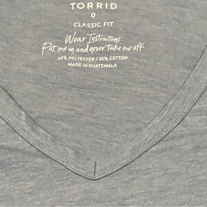 Torrid women’s shirt, Torrid gray tee, Torrid v-neck, Torrid size 0 top, Torrid classic fit t-shirt, plus size Torrid tee, casual Torrid shirt, Torrid basics