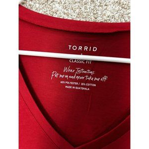 Torrid Classic Fit Jester Red Long Sleeve Girlfriend Tee Shirt Size 1XL