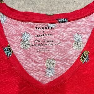 Torrid Classic Fit Pineapple Pocket V-Neck Tee Red Size 0