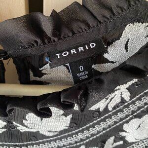Torrid Clip Dot Embroidered Floral Black White Chiffon Sleeveless Blouse