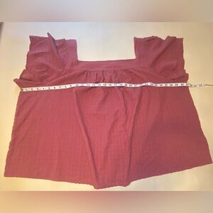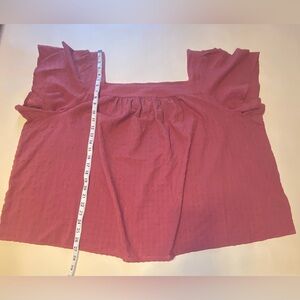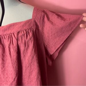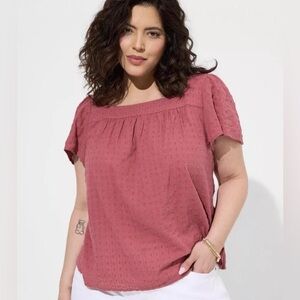 Torrid Top Womens 5, 5X, 28 Peasant Clip Jacquard Square Neck Flutter Sleeve Top Mauvewood