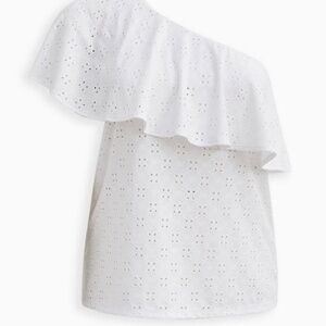 Torrid Coastal Top 26 White Eyelet Ruffle Euro Summer Preppy Old Money Classic