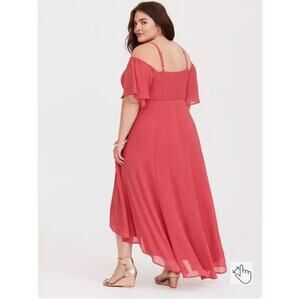 Torrid Cold Shoulder Chiffon Maxi Dress Size 6X Asymmetrical Hem Fairy Boho Pink