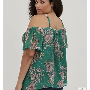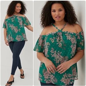 Torrid Cold Shoulder Halter Top Crinkle Chiffon Floral Green Plus Size 3X 3 NWT