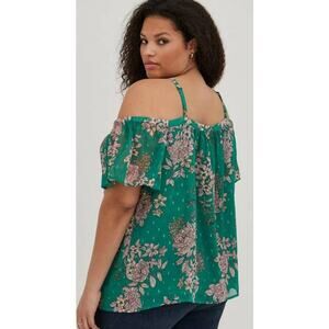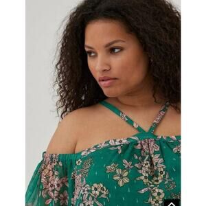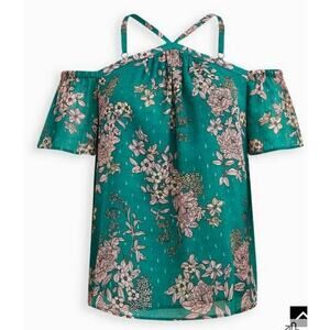 Torrid Cold Shoulder Halter Top Crinkle Chiffon Floral Green Size 4XL NWT