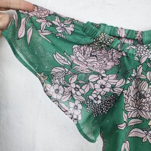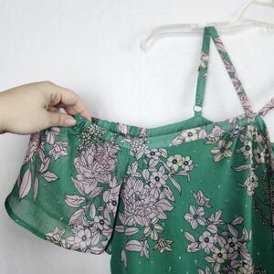 Torrid Cold Shoulder Halter Top Crinkle Chiffon Floral Green Sz 1X Lined Shimmer