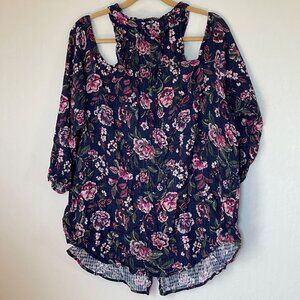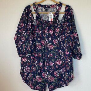 Torrid Cold Shoulder NEW Plus Size 3X Blouse Crinkle Gauze Navy/Pink/Red Floral