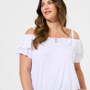 Torrid Cold Shoulder Ruffle Banded Bottom Top Size 2