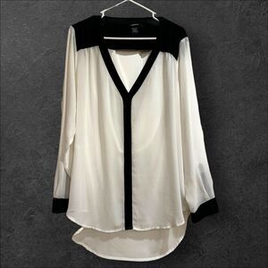 Torrid Color Block Open Back Long Sleeve Sheer Blouse Size 1X