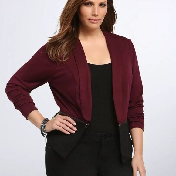 Torrid Color Block Shawl Collar Blazer Cardigan Black & Maroon Red 2X #10416601