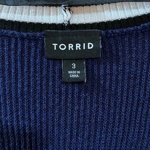 Torrid Colorblock Navy Blue Open Front Long Line Cardigan Sweater Size 3