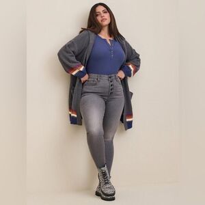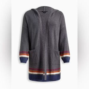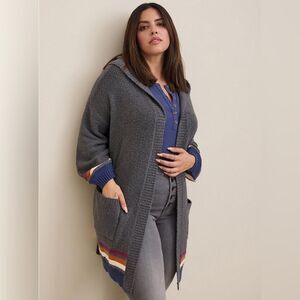 Torrid Comfy Oversized Knit Boho Autumn Hooded Open Front Longline Cardigan Sweater