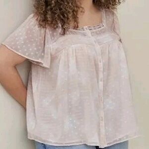 Torrid Coquette Chiffon Lace Blouse Top Blush Pink