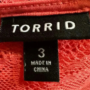 Torrid Coral A-Line Midi Dress Size 3 Lace Ruffle Sleeves V-Neck