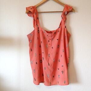 Torrid Coral Cactus Print Ruffle Crepe Tank Blouse