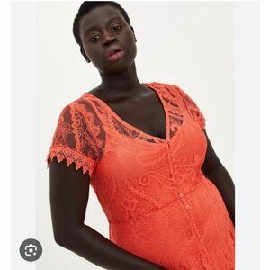 Torrid Coral Lace Button Front Maxi Dress Spring Easter Holiday sz 3X NWT