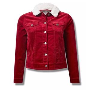 Torrid Corduroy Sherpa Lined Trucker Jacket Rhubarb Red Plus Sz 3X EUC Stunning